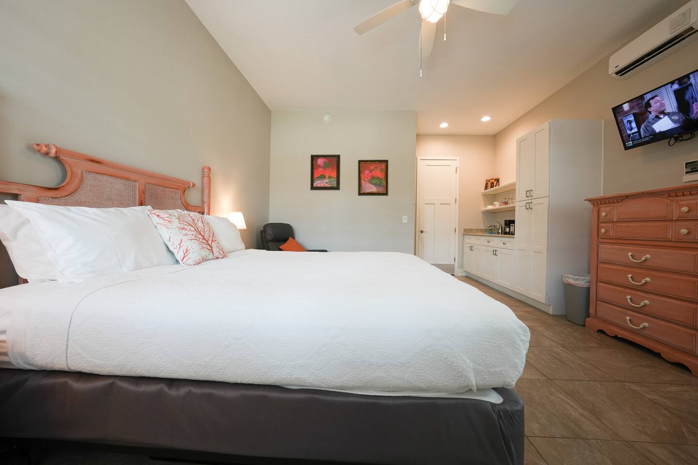 This cottage features a king bed, free wifi, a private bathroom and a mini fridge. Unwind in the beautiful city of Dunedin. From the property, it is a 5 minute walk to some of the best restaurants, bars and other activities. We're a 15 minute drive away from one of the most beautiful beaches: Clearwater Beach. We welcome you to enjoy the pool and hot-tub. We offer free-parking on site. We also invite you to use the shared lounge area.
